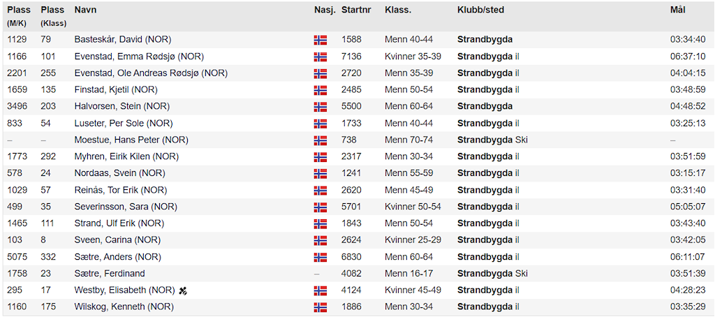 Birken ski - Resulatater