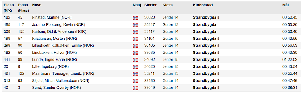 Her er resultatene: